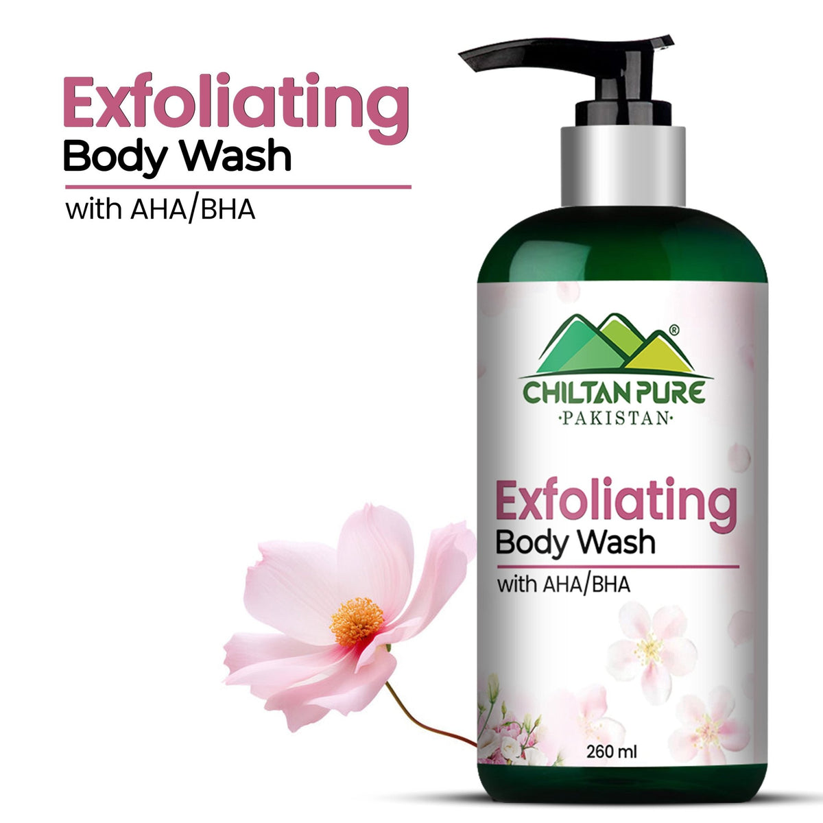 Rs. 330Chiltan Pure AHA / BHA Body Wash is specially formulated to exfoliate and rejuvenate your skin. It effectively removes dead skin cells, unclogs pores, and brightens your complexion. Additionally, it works wonder on body acne, discoloration, and rough patches. This powerful blend helps reduce strawberry skin (keratosis pilaris) and strawberry legs, leaving your skin smooth and refreshed. With regular use, enjoy a clearer, more even-toned, and radiant glow. Perfect for rough areas like arms, back, shoulders, legs, and elbows, this body wash helps improve texture, tone, and clarity leaving your skin feeling silky smooth, refreshed, and visibly brighter.
