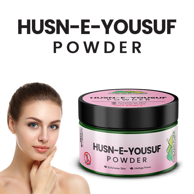 ChiltanPure Husn-e-Yousuf Powder deeply nourishes and exfoliates the skin and is a natural way to get brighter and glowing skin. Our organic Husn-e-Yousuf powder's antibacterial properties help clear clogged pores, remove dead skin cells, and absorb excess oil from the skin, revealing a clear, flawless complexion. Regular application of this powder lightens dark patches and skin discolouration.