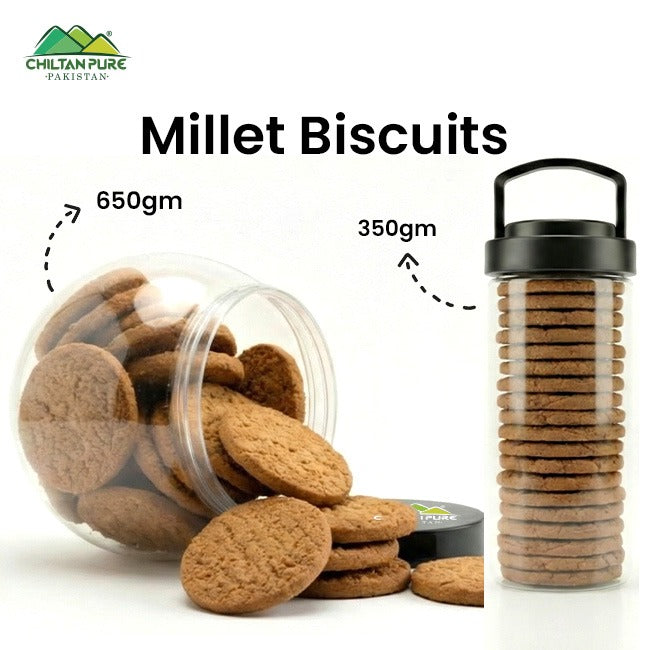 Millet Biscuits are wholesome, crunchy snacks made from nutrient-rich millet flour, offering a healthy and delicious alternative to regular biscuits. Packed with natural fiber, vitamins, and minerals, these biscuits support digestion and overall well-being. They have a light, crisp texture and a mildly nutty flavor, making them perfect for tea time, lunch boxes, or on-the-go snacking. Millet Biscuits are suitable for all ages and are an excellent choice for anyone looking for a tasty yet nutritious snack option.